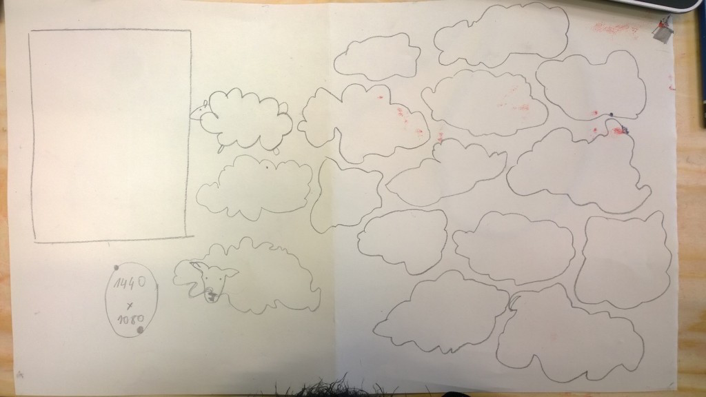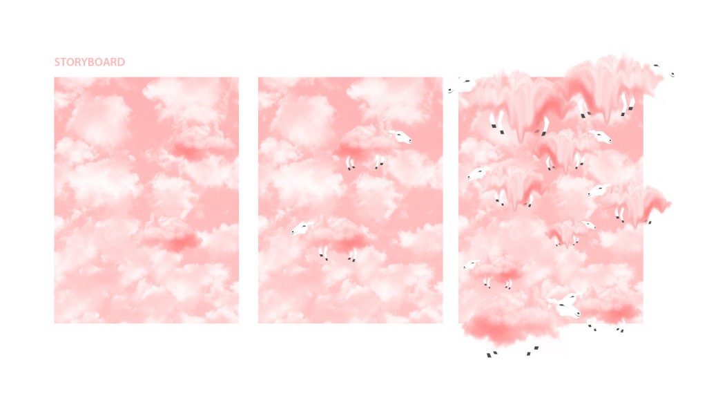 Then deciding that it would be more effective to have white clouds on a pink background rather than keep the clouds pink themselves, we began building imagery which would feature in the final piece. In order to vary the colours and extend the dimensions in which the animation existed, we decided that the sheep would turn grey as they began to melt, signifying a loss of life.
