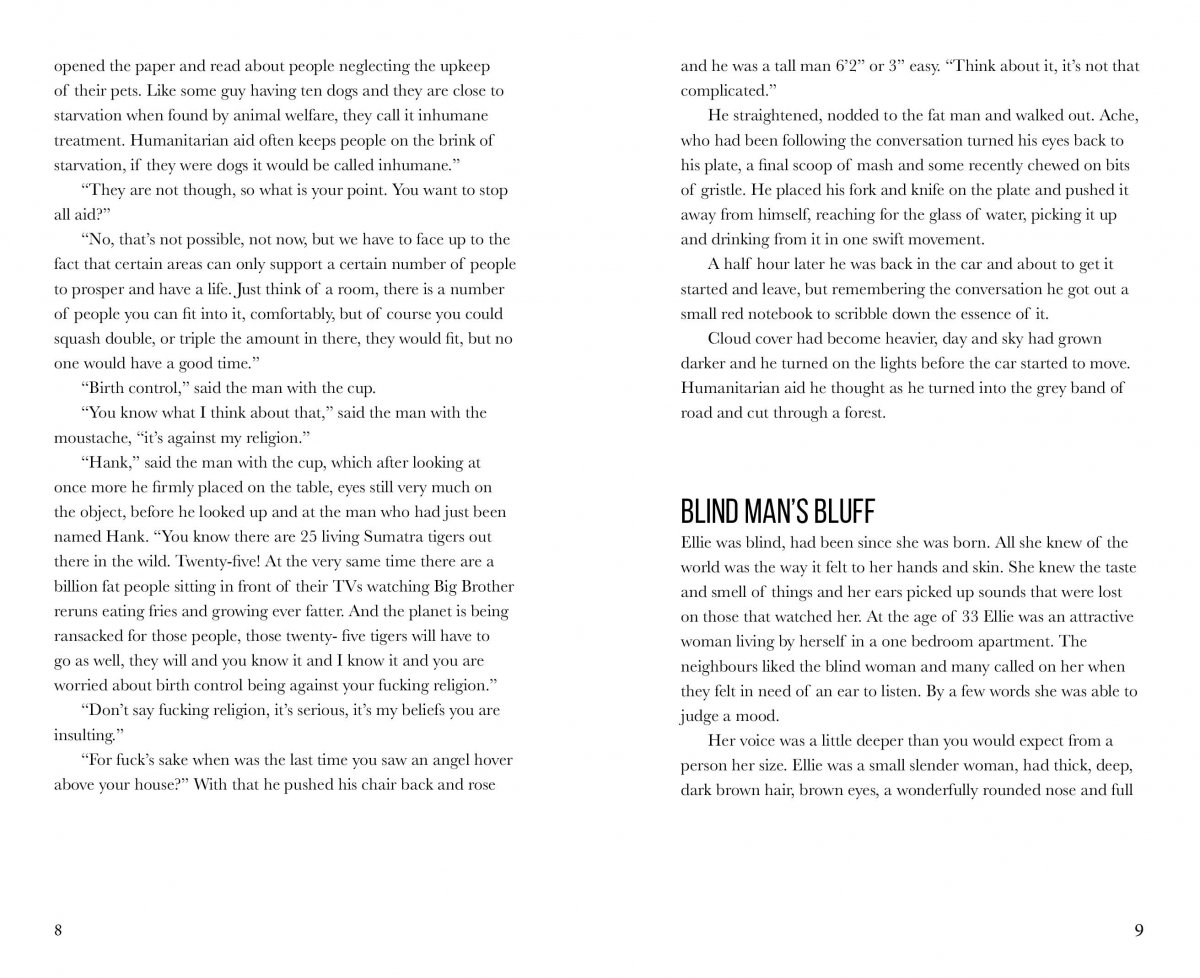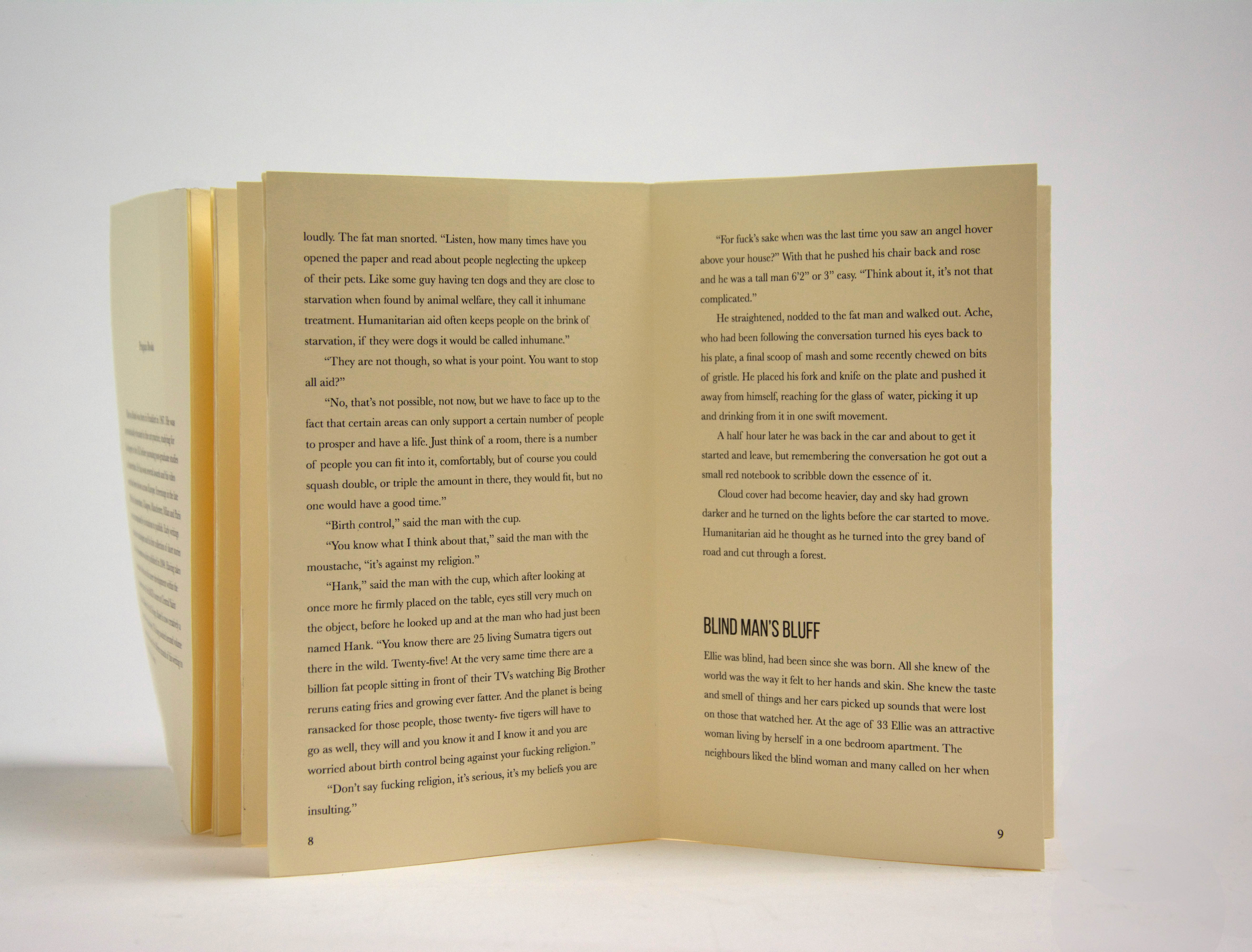 A challenging but oddly satisfying brief, I never thought the inside pages of a book could be so difficult to design. I chose Bebas as my heading typeface and Baskerville for the body; as well as providing a satisfying contrast, Bebas was modern but minimalist whilst Baskerville was readable and commonly used in books.